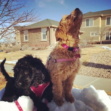 We currently breed F1 Goldendoodles. Our dogs are full size Golden Retrievers and a Standard Poodle. Full grown adults typically weight around 55 to 75 pounds. They have a low to no shed coat that is ideal for someone with mild to moderate allergies.